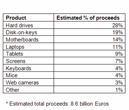 Note: Tablets and laptops are estimated to contribute 9%+11% = 20% of the proceeds. Had we missed the fact that the statement is not about the proceeds, we might have mistakenly answered True. Always make sure you read the statement carefully and know exactly what you are looking for.