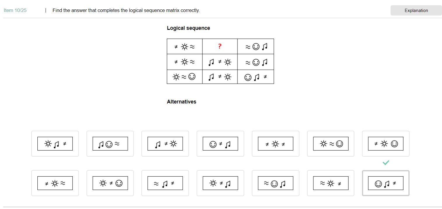 As mentioned above the Abstract Reasoning Test demands complete logical patterns of symbols or matrices, and practice is essential.