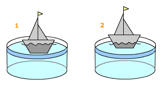 The illustration shows two vessels that contain a floating boat in a certain unspecified liquid. Generally, the greater the density of the particles in a liquid (Liquid Density), the heavier it will be.