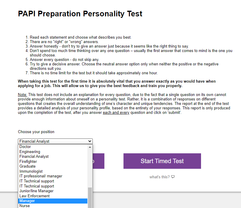 Here you will find free PAPI sample questions taken directly from our preparation. In the preparation, you'll find PAPI Personality questions tailored to the type of position you're applying for.